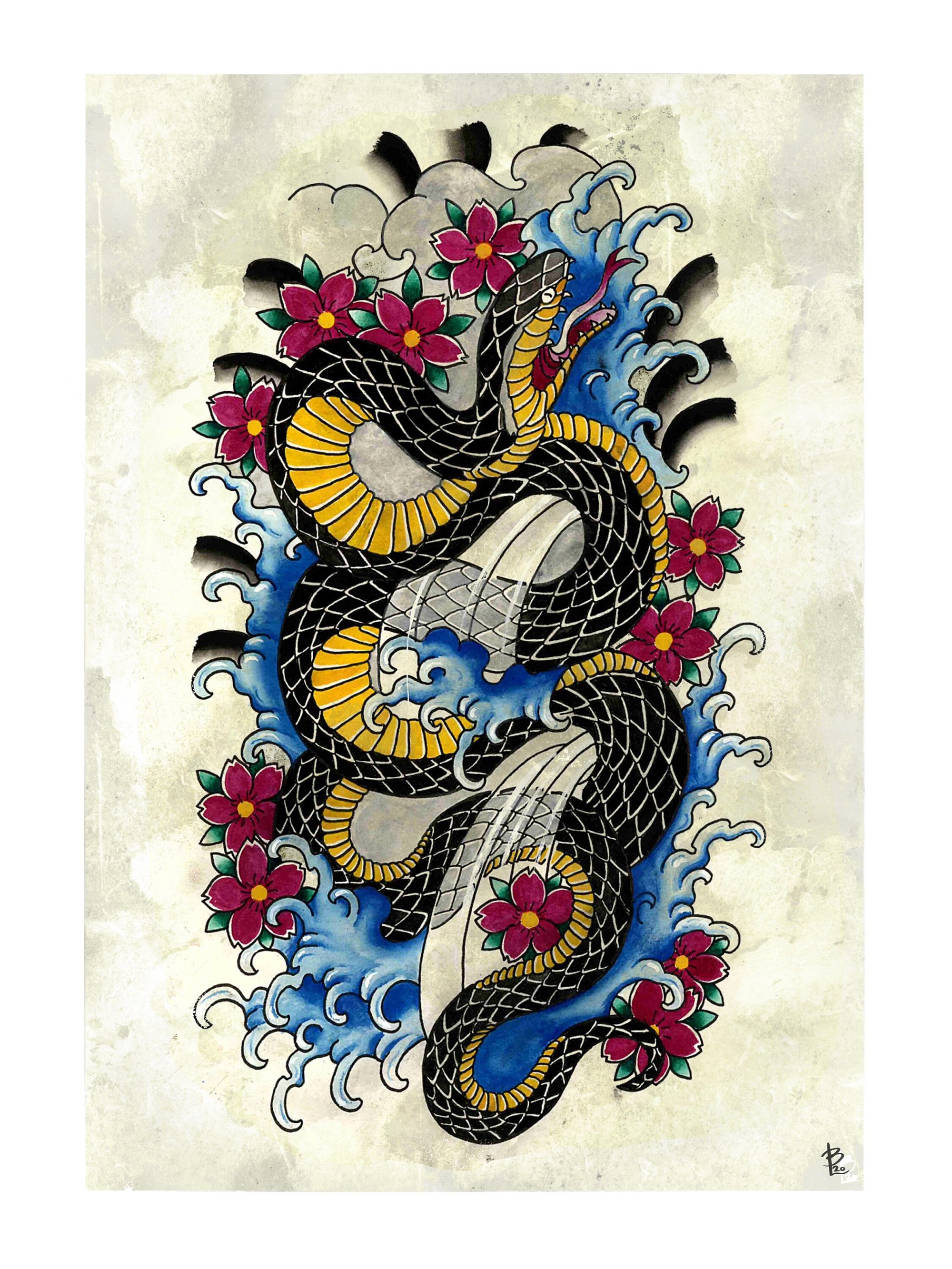 Serpent & Cherry Blossom Print (5x7", 9x12")