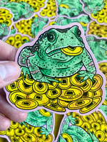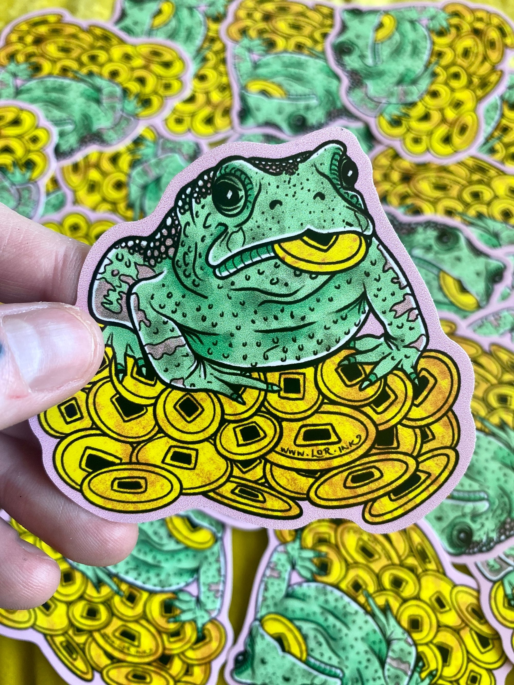 This 3-inch money frog sticker is the perfect addition to your unique sticker collection! 💫 Money frogs are known to attract prosperity and good fortune. 🐸