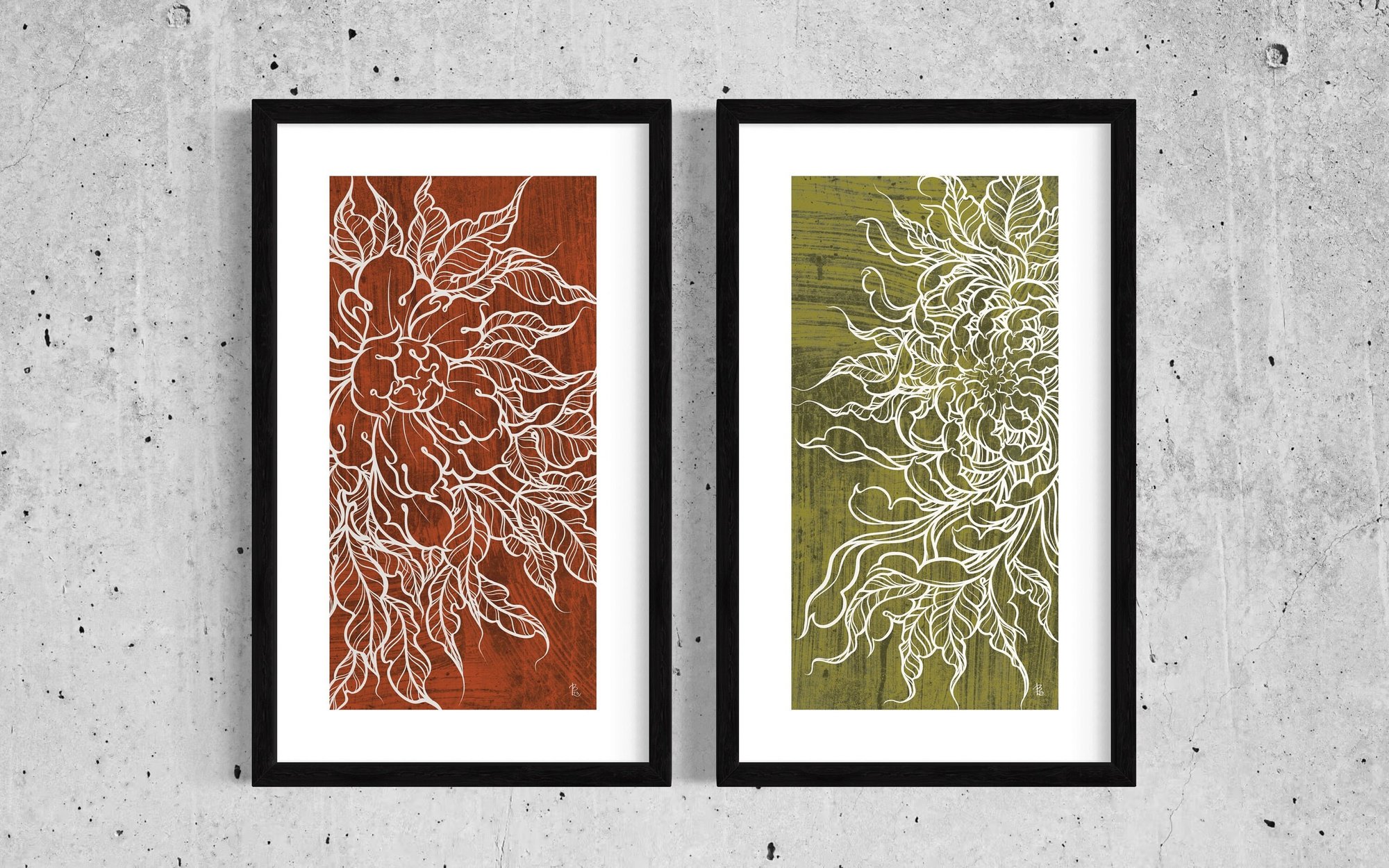 Peony & Chrysanthemum Illustration Duo - Prints (10x20" each)