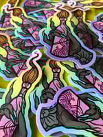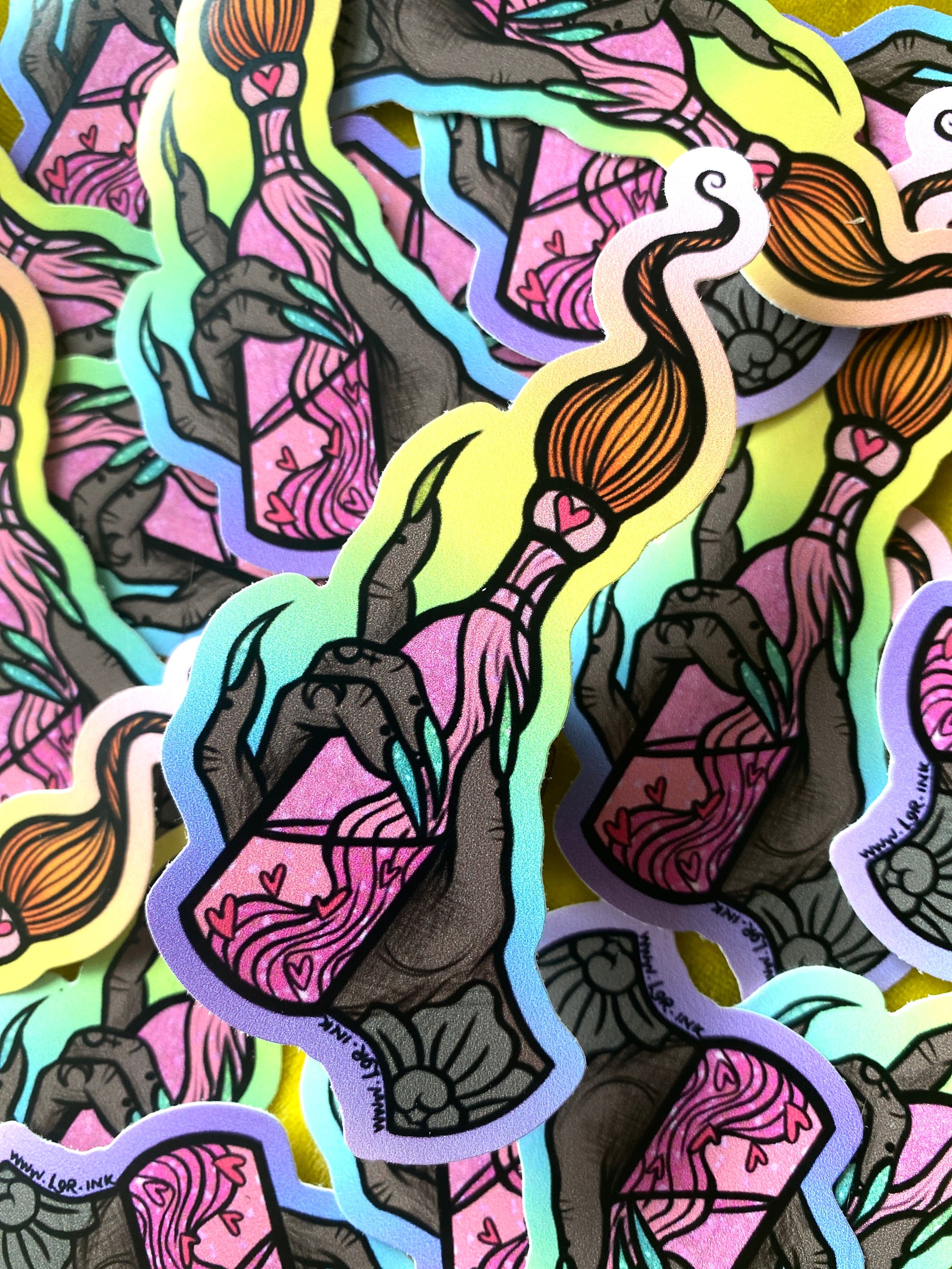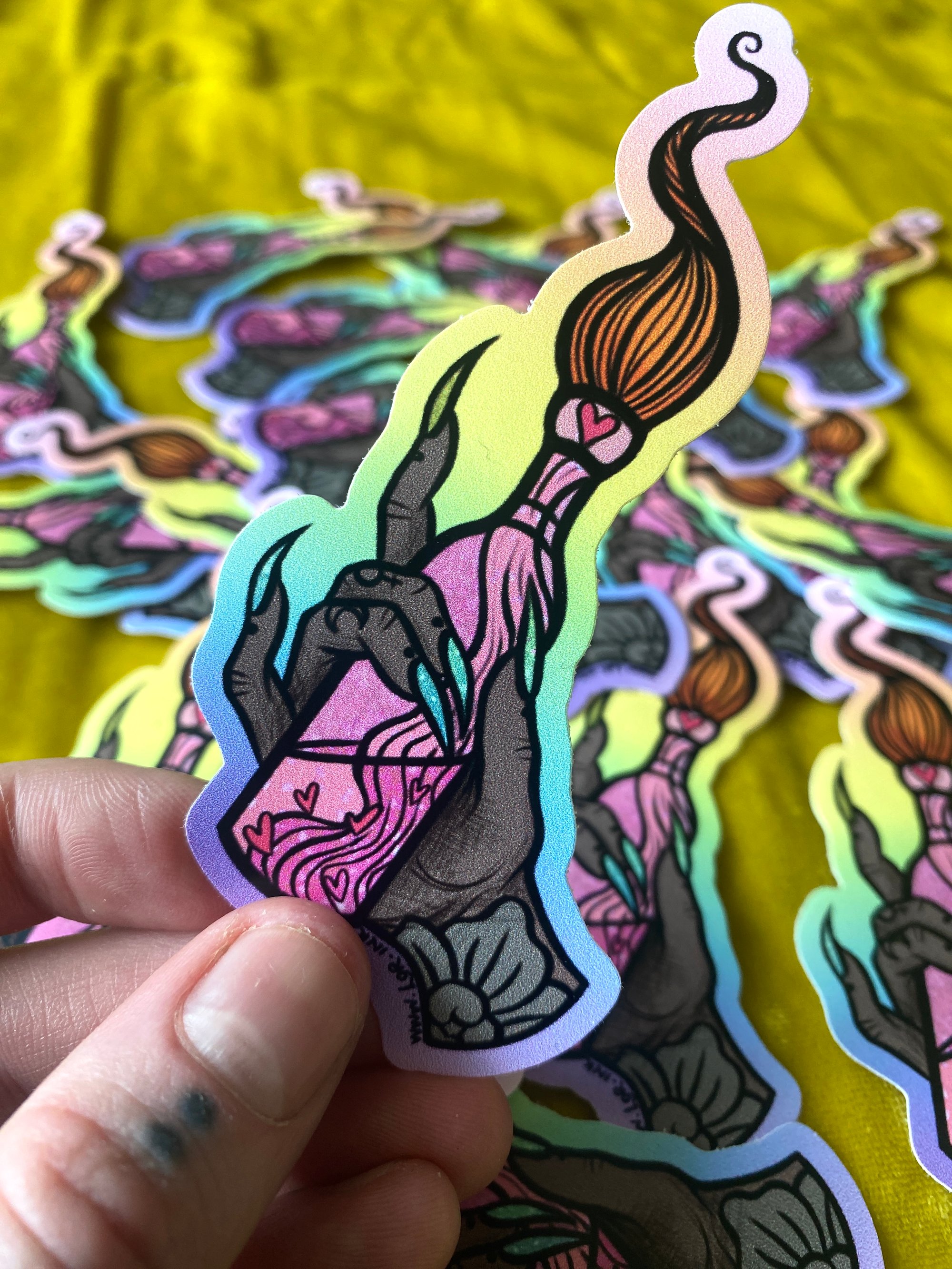 This rainbow and pink molotov cocktail being held elegantly by a tattooed hand saying "I love you" in ASL on fire is a beautiful and empowering addition to your sticker collection. Inspired by LGBTQ+ history.